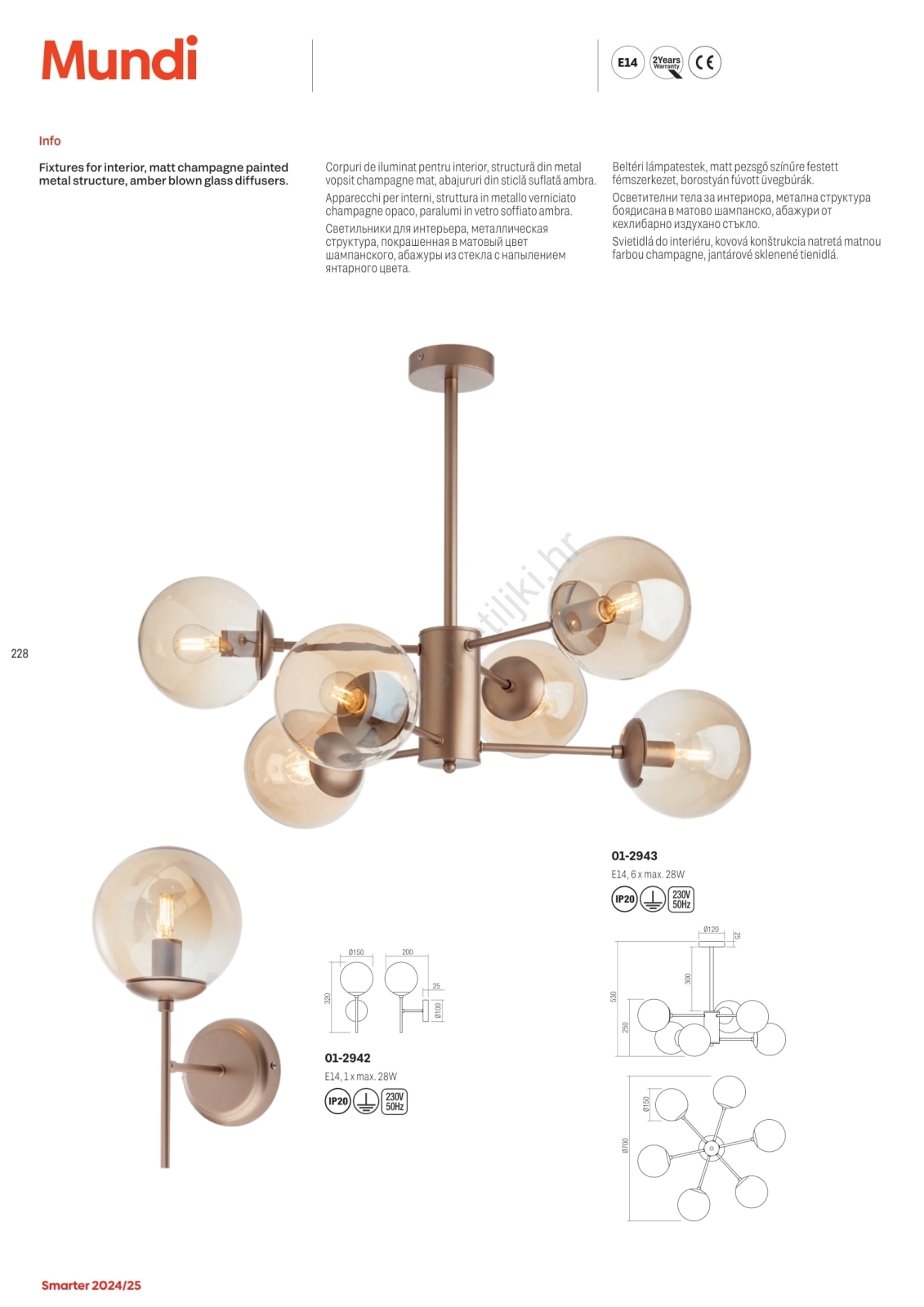 Redo 01-2942 - Zidna lampa MUNDI 1xE14/28W/230V bakar karakterizira lijep i funkcionalan dizajn. Za svjetiljku je prikladna žarulja s bazom E14. Ovdje možete kupiti i druge žarulje po povoljnim cijenama. Bit će zanimljiv dodatak Vašem domu.