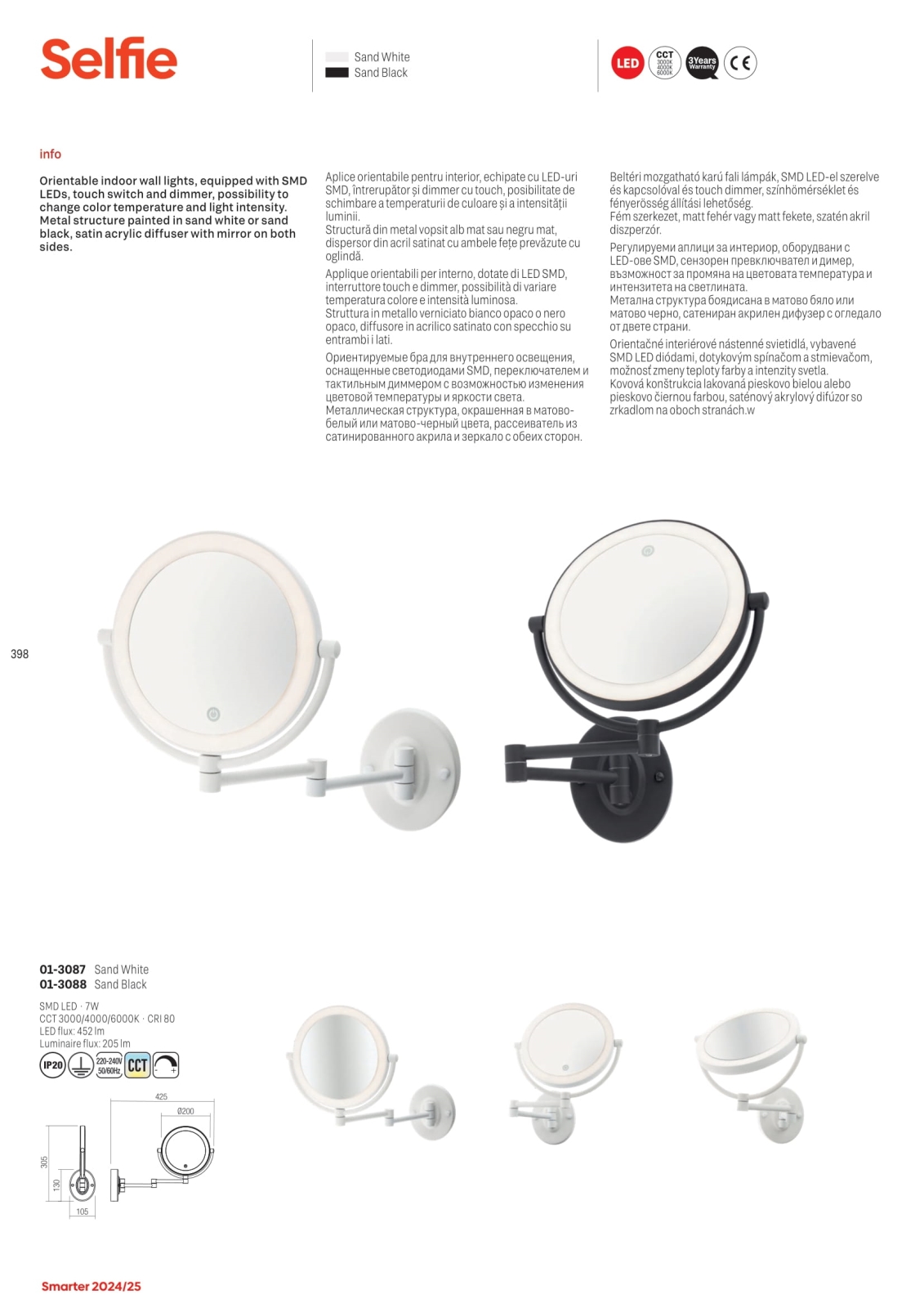 Redo 01-3087 - LED Dimmabilno dodirno kozmetičko ogledalo SELFIE LED/7W/230V 3000/4000/6000K bijela