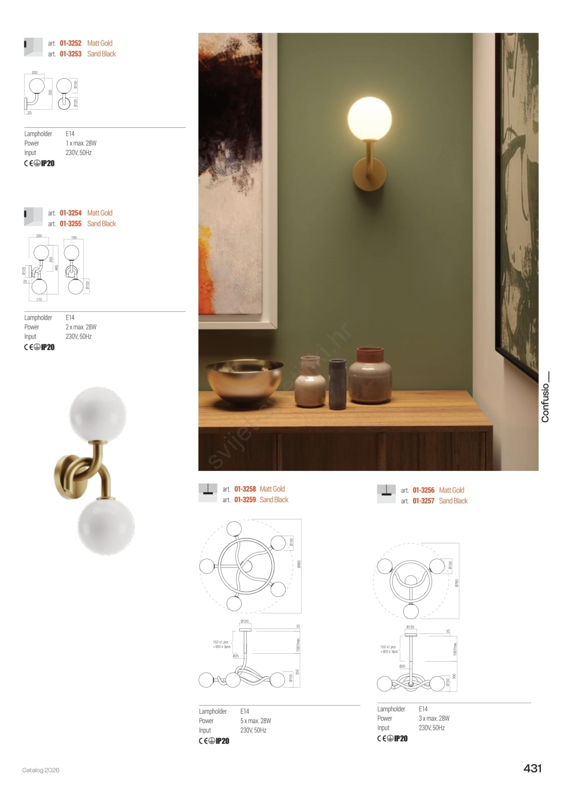 Redo 01-3258 - Luster na stalku CONFUSIO 5xE14/28W/230V Ø 96 cm zlatna karakterizira lijep i funkcionalan dizajn. Za svjetiljku je prikladna žarulja s bazom E14. Ovdje možete kupiti i druge žarulje po povoljnim cijenama. Bit će zanimljiv dodatak Vašem domu.