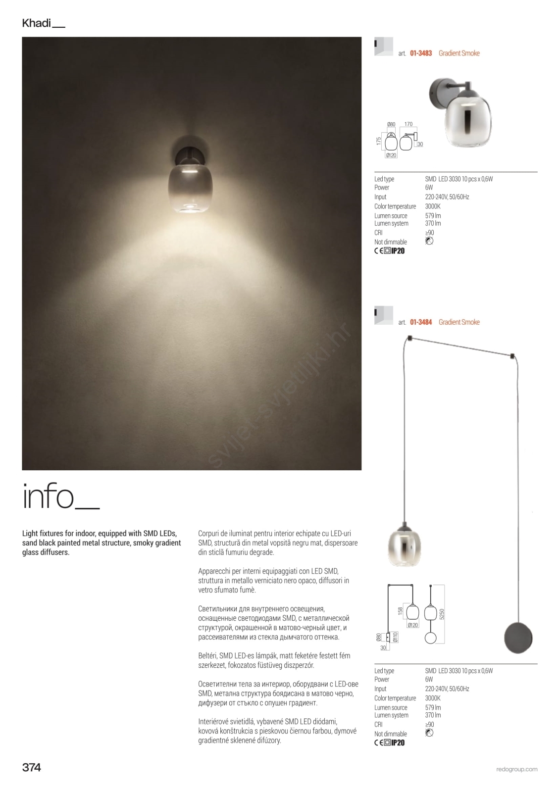 Redo 01-3483 - LED zidna svjetiljka KHADI LED/6W/230V CRI 90 crna/zadimljena