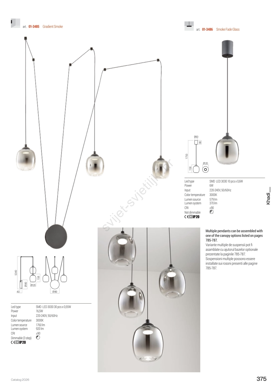 Redo 01-3486 - LED luster na sajli KHADI LED/6W/230V CRI 90 Ø 12 cm crna/dimljena