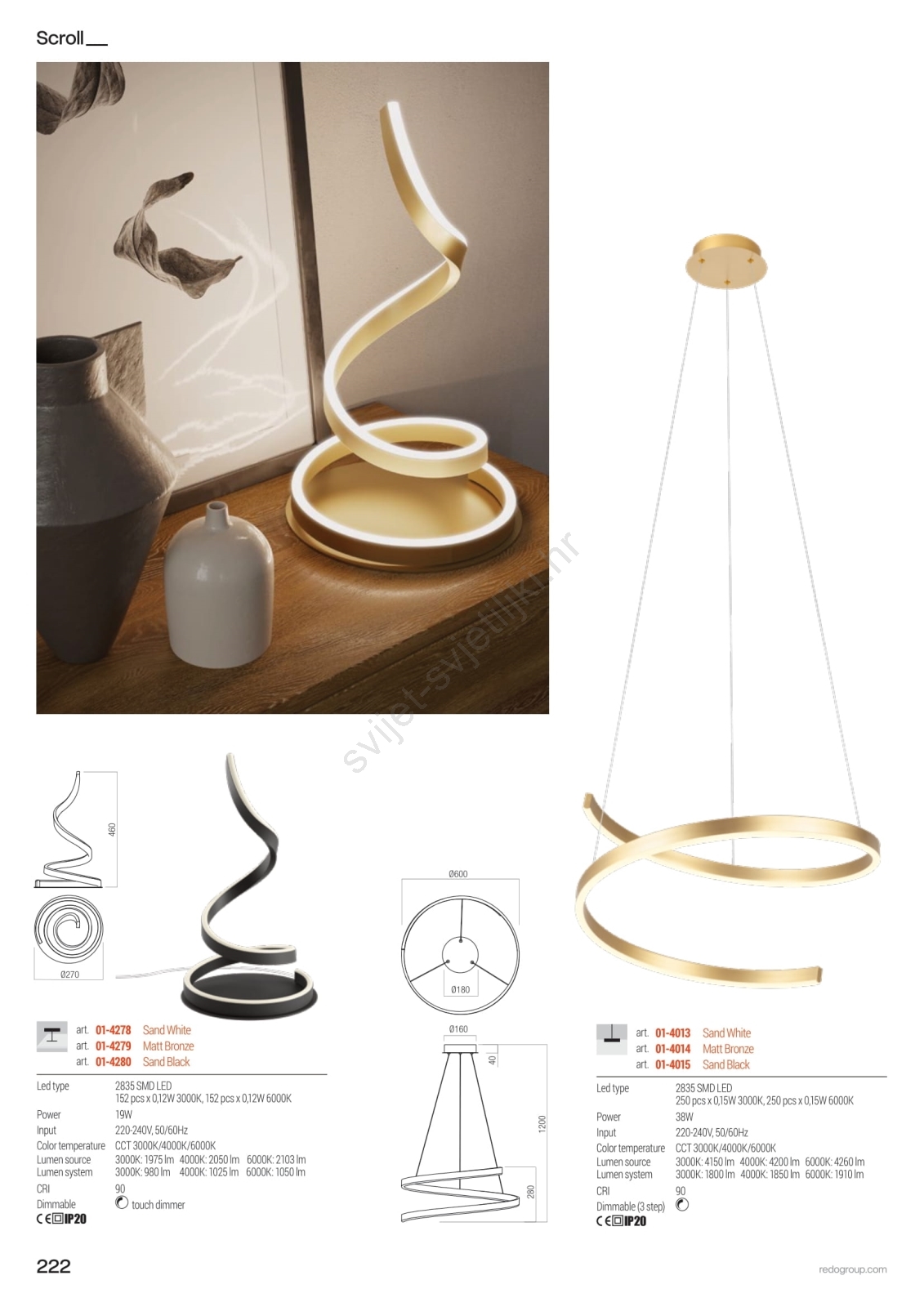 • Redo 01-4014 - SCROLL LED luster na sajli s mogućnošću prigušivanja LED/38W/230V 3000K/4000K/6000K CRI 90 Ø 60 cm u zlatnoj boji