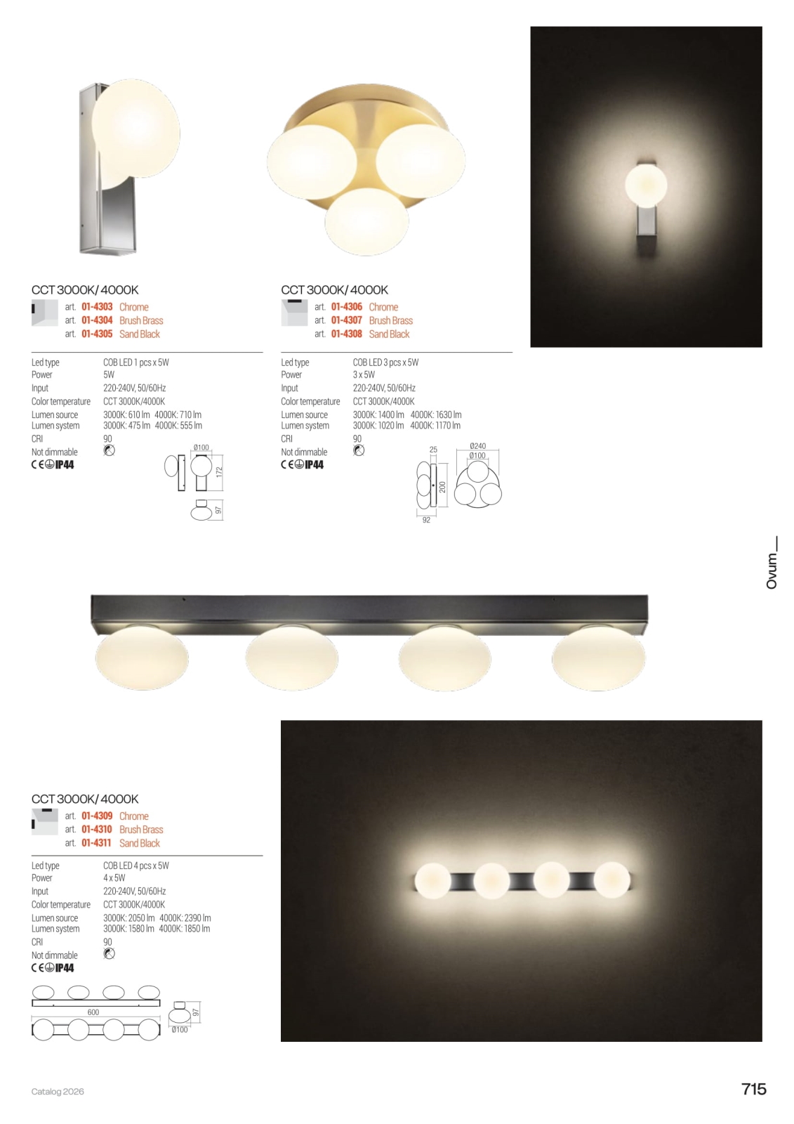 • Redo 01-4310 - LED stropna svjetiljka za kupaonicu OVUM 4xLED/5W/230V 3000/4000K CRI 90 IP44 bijela/mesing