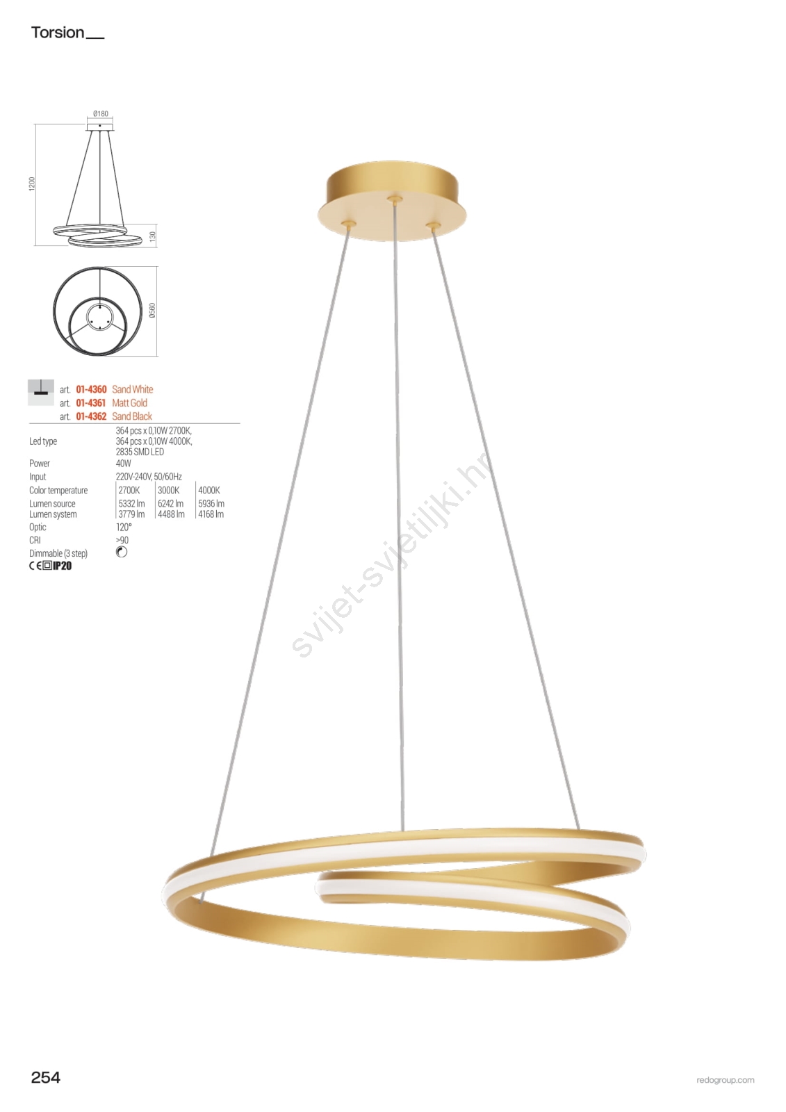 • Redo 01-4360 - TORSION LED luster na sajli s mogućnošću prigušivanja, 40W/230V, 2700/3000/4000K, CRI 90, Ø 56 cm, bijela