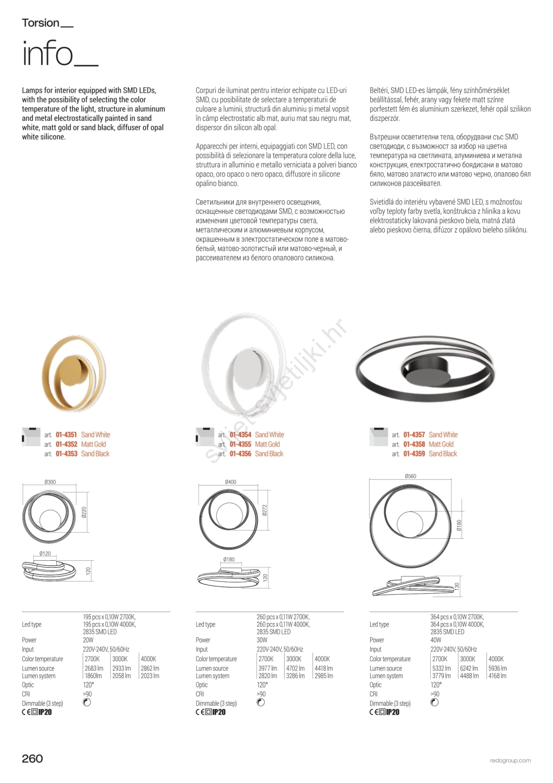 • Redo 01-4364 - LED luster na sajli TORSION, s mogućnošću prigušivanja, LED/60W/230V 2700/3000/4000K CRI 90 Ø 75,2 cm zlatni