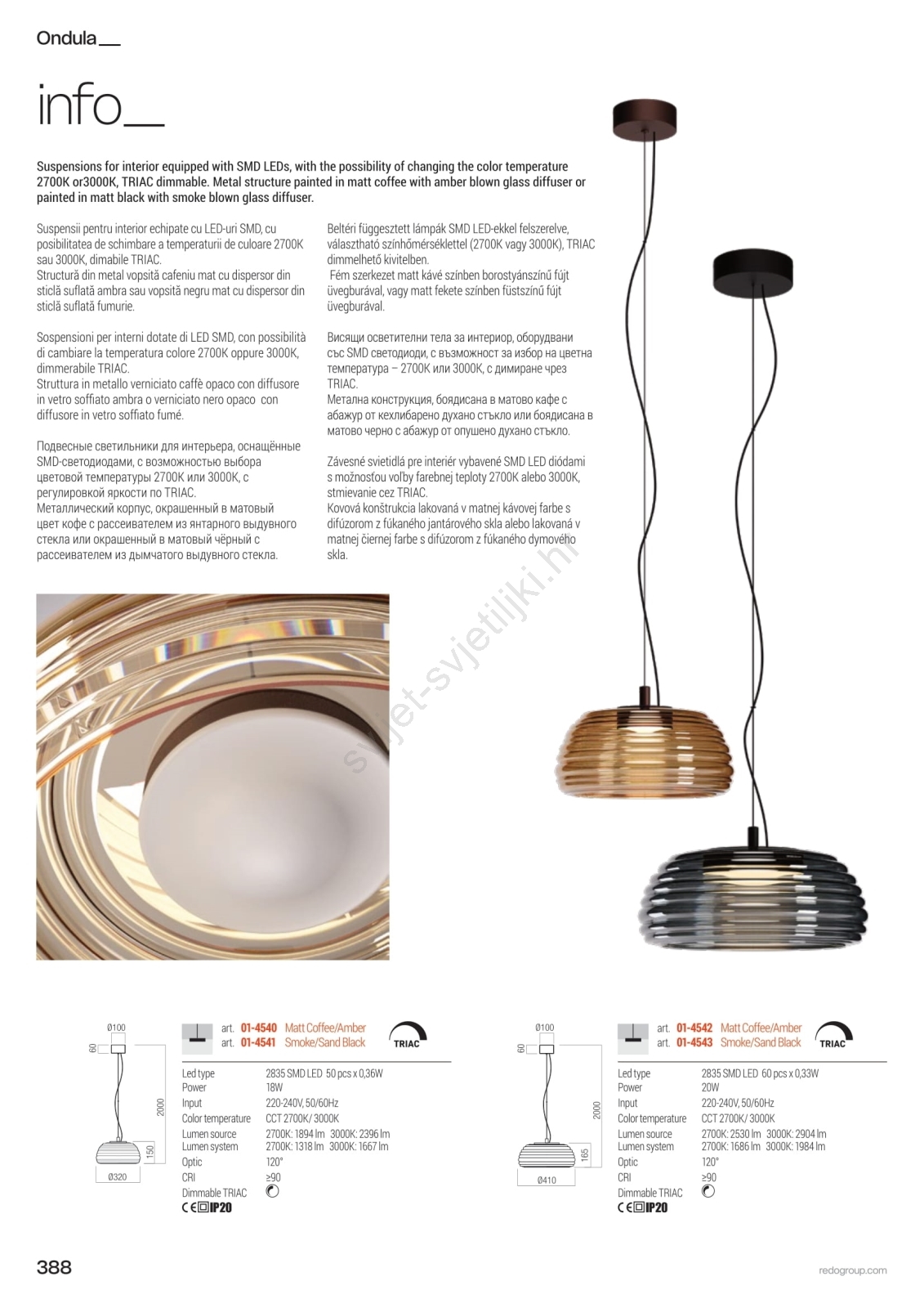 • Redo 01-4540 - LED prigušivi luster na užetu ONDULA LED/12W/230V 2700K/3000K CRI 90 Ø 32 cm bež/dimljena