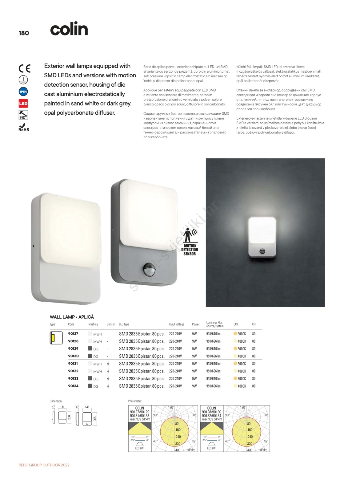 • Redo 90131 - LED vanjska zidna svjetiljka s integriranim senzorom pokreta i sumraka COLIN LED/9W/230V 3000K IP54 bijela