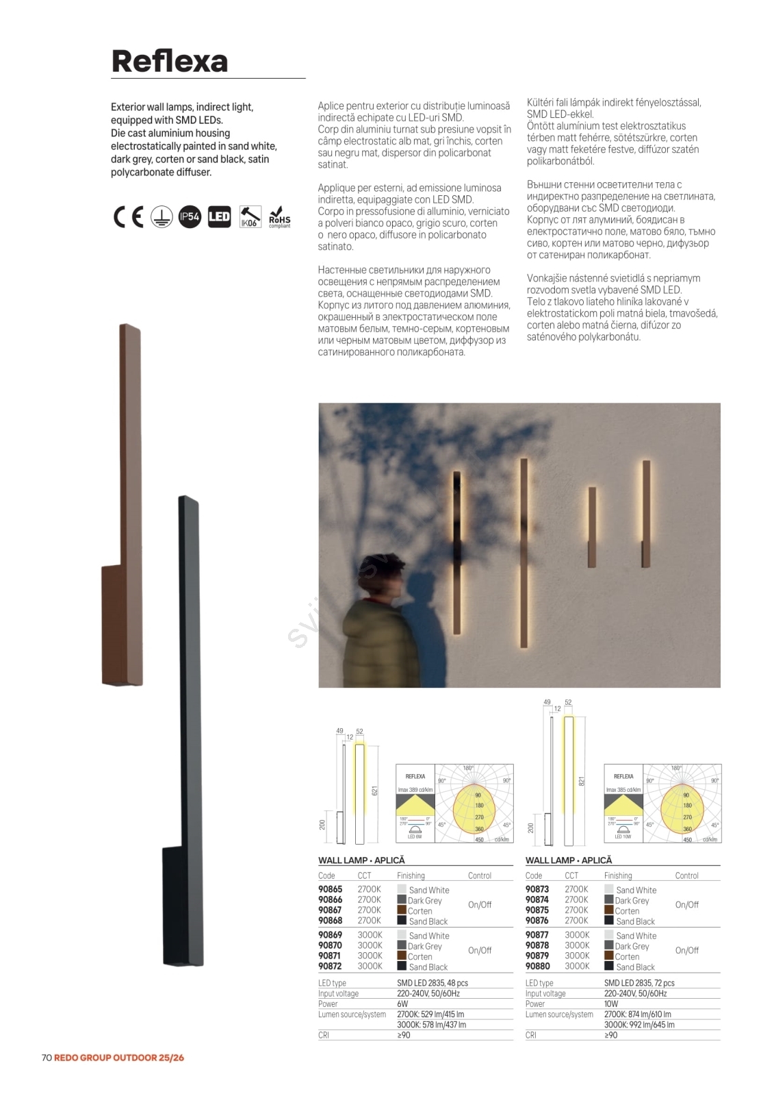 • Redo 90869 - LED vanjska zidna svjetiljka REFLEXA LED/6W/230V 3000K 62,1 cm CRI 90 IP54 bijela