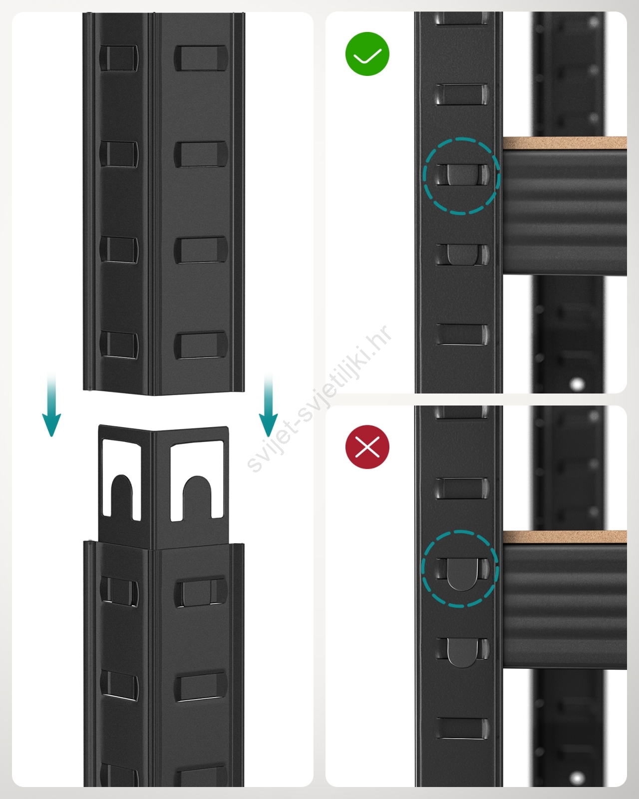 • U paketu se nalazi set protiv prevrtanja koji vam pomaže pričvrstiti policu za zid, čime regal postaje stabilniji i sigurniji.