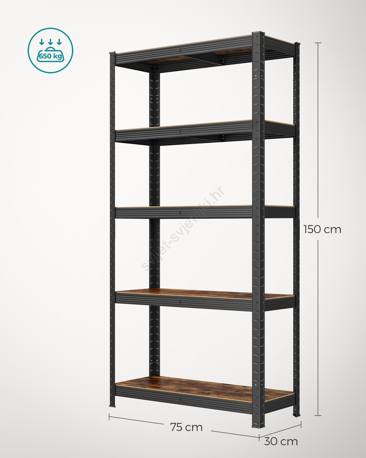 • Svaka polica može podnijeti do 130 kg i sigurno će držati boje, alat i fitness opremu.