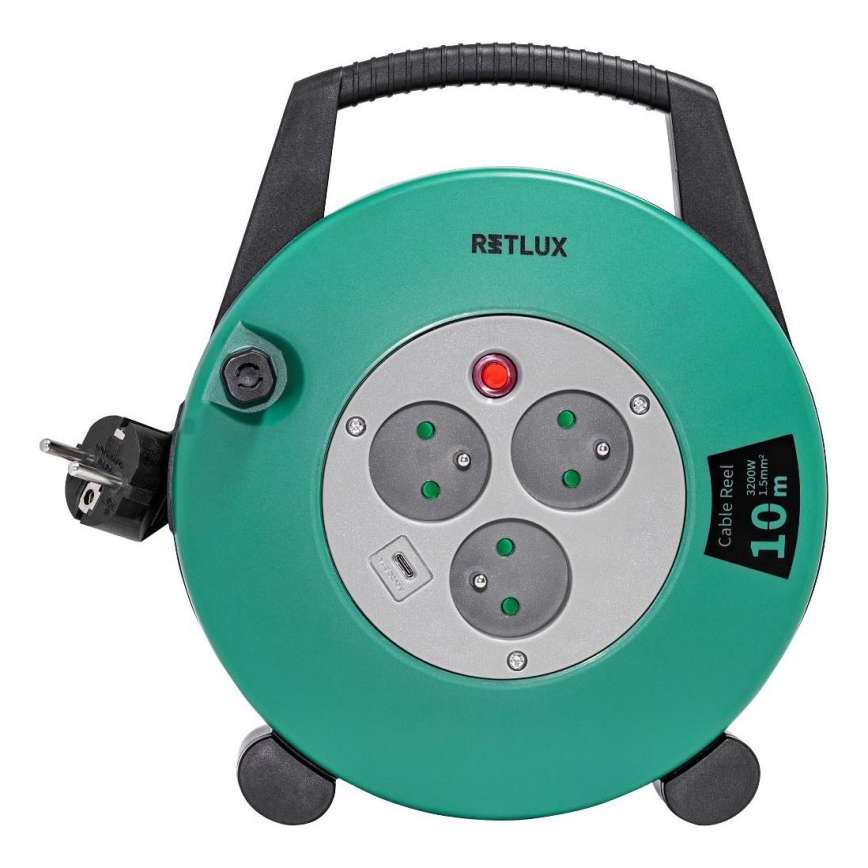 Retlux - Produžni kabel na kolutu 3Z Tip E 10 m zeleni/crni