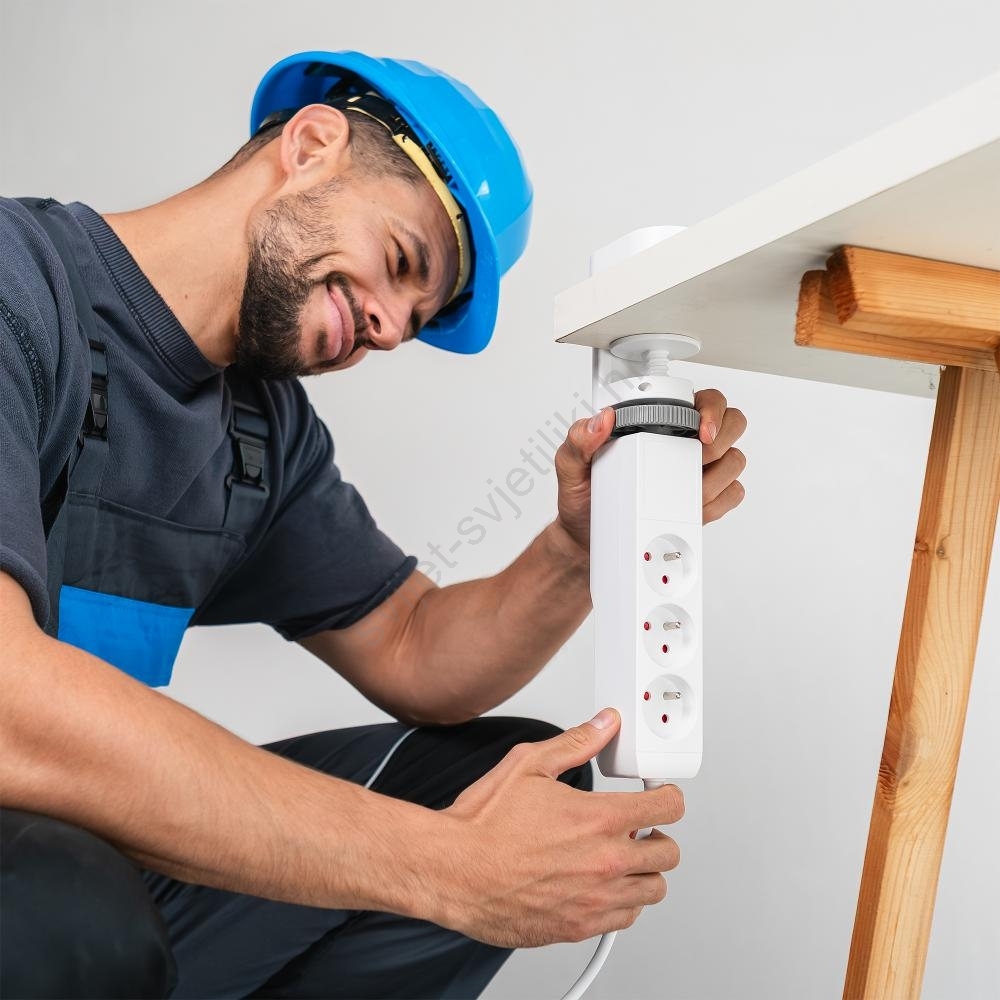 Produžni kabel s držačem za stol 3 utičnice Tip E + 2xUSB-A + 1xUSB-C 1,5m bijela