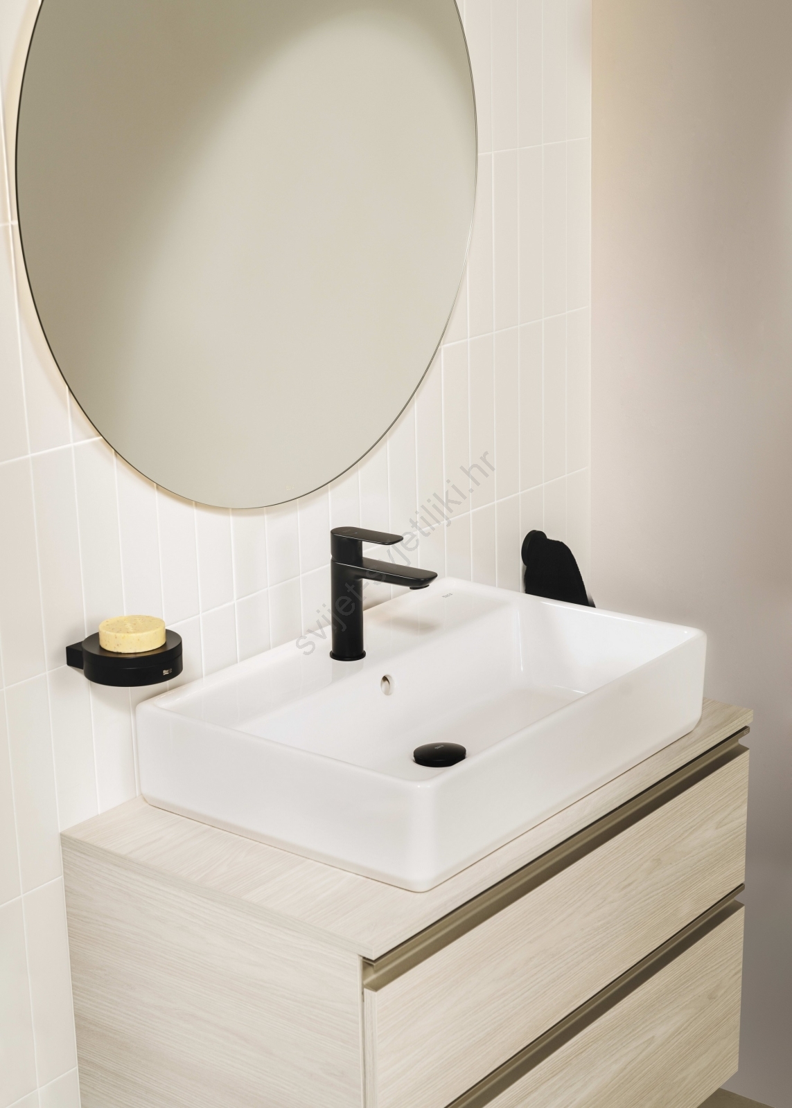 • Umivaonik je namijenjen za ugradnju na radnu ploču, što omogućuje fleksibilno postavljanje i kombiniranje s različitim vrstama kupaonskih ploča.