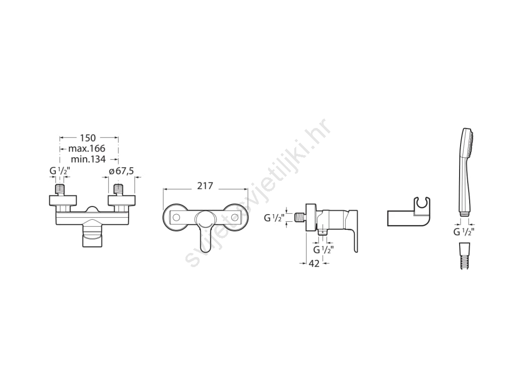 • Pakiranje sadrži: tuš miješalicu, ručnu tuš glavu, fleksibilno crijevo 1,5 m i rotirajući zidni držač.