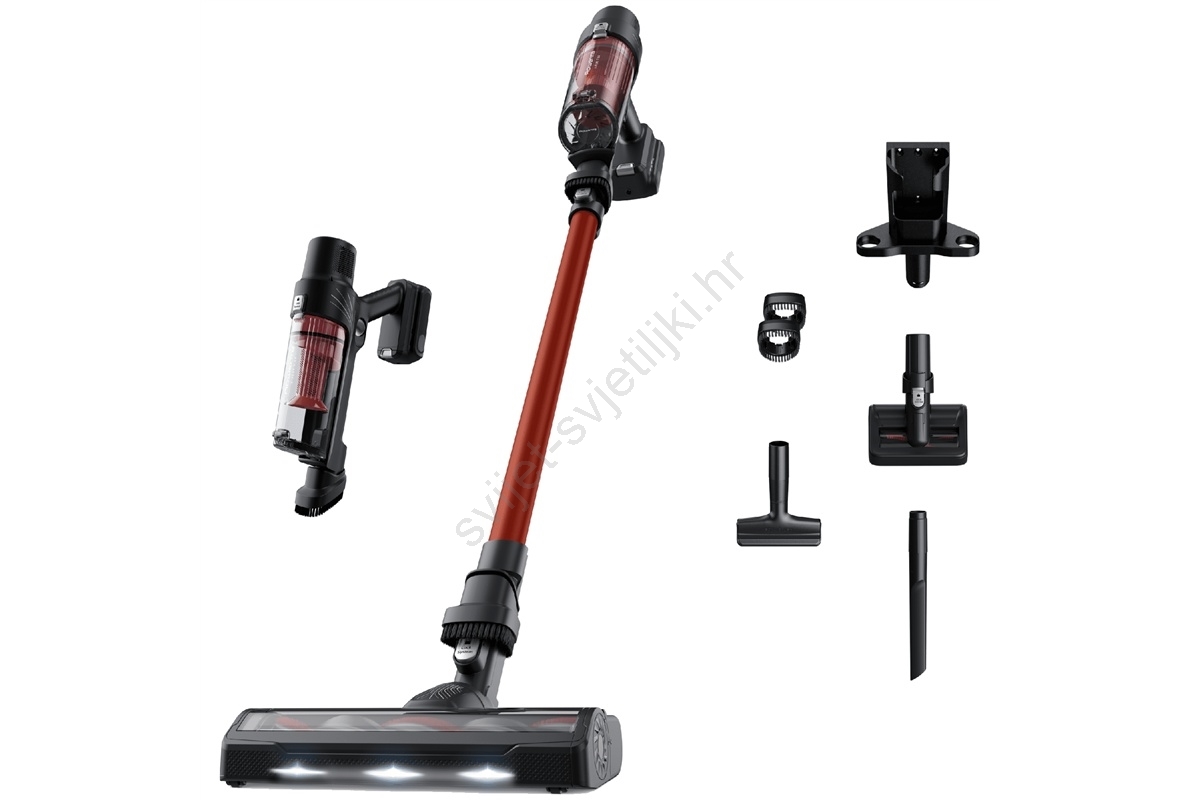 • Pribor: nastavak za tapecirani namještaj, nastavak za pukotine, zidni držač, set za učinkovito uklanjanje dlaka kućnih ljubimaca, nastavak s motoriziranom četkom i LED osvjetljenjem.