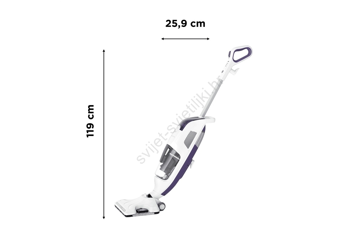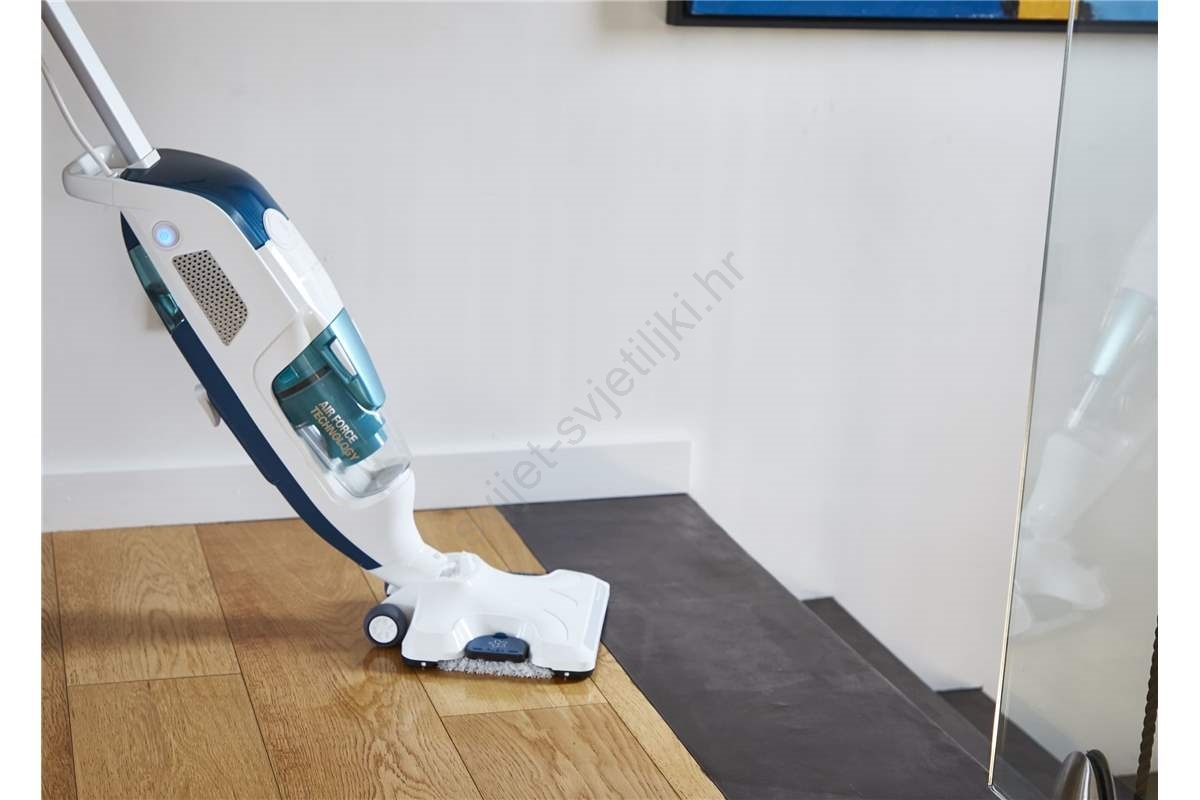 • Multifunkcionalni 2u1 uređaj: štapni usisavač i istovremeno parni mop — zahvaljujući tome usisat ćete i obrisati pod jednim potezom.