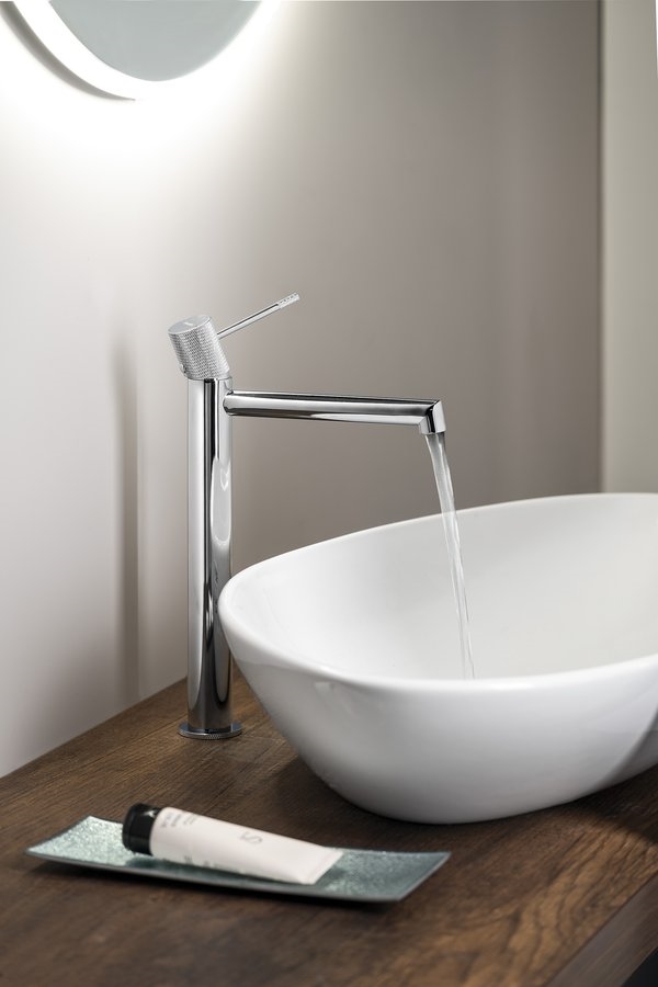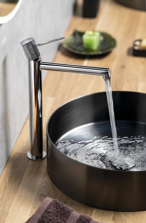 • Kupaonska miješalica se ističe tankim linijama i detaljima u industrijskom stilu.