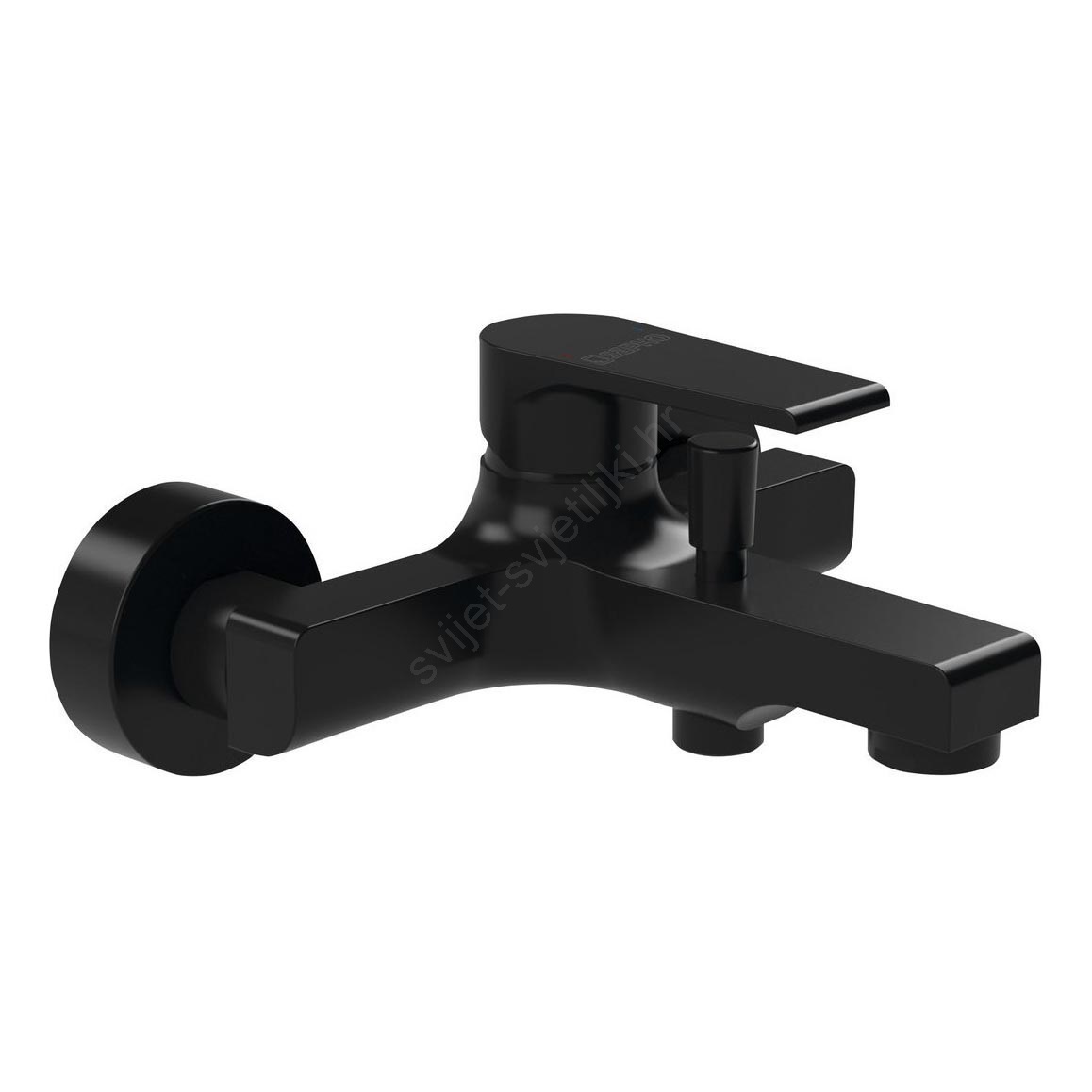 • Ova baterija za kadu ima valjkasto tijelo i uglati izljev.