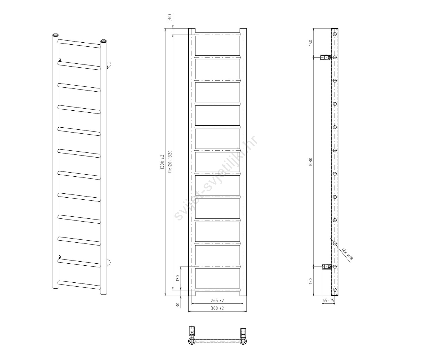 Sapho - Kupaonski radijator DINA 278W 30x138 cm mat crna