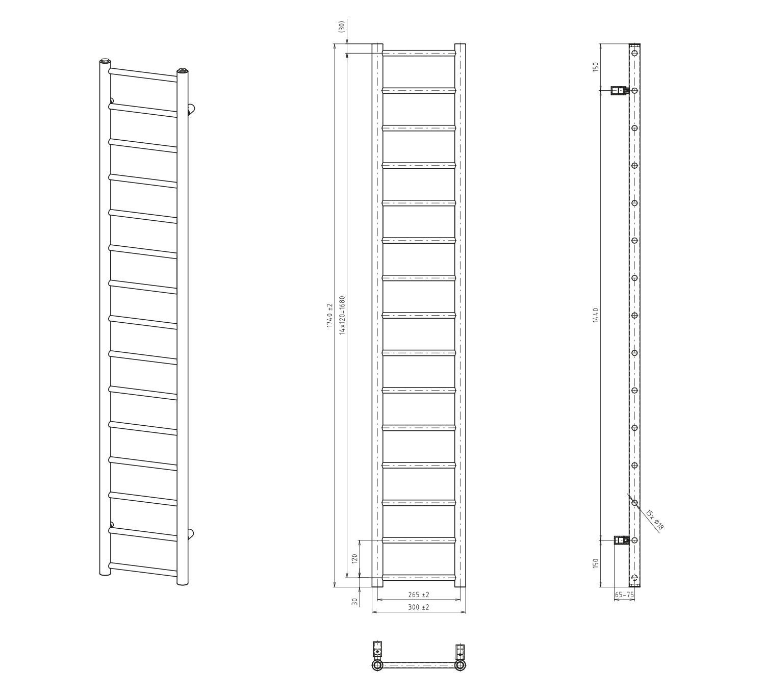 Sapho - Kupaonski radijator DINA 335W 30x174 cm mat crne boje