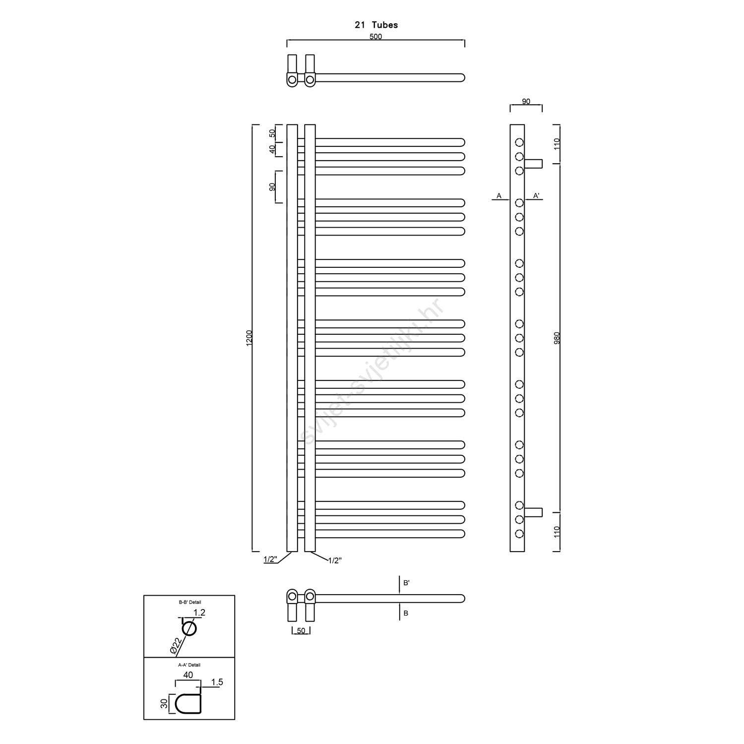 Sapho - Kupaonski radijator DORLION 400W/230V 50x120 cm mat crne boje