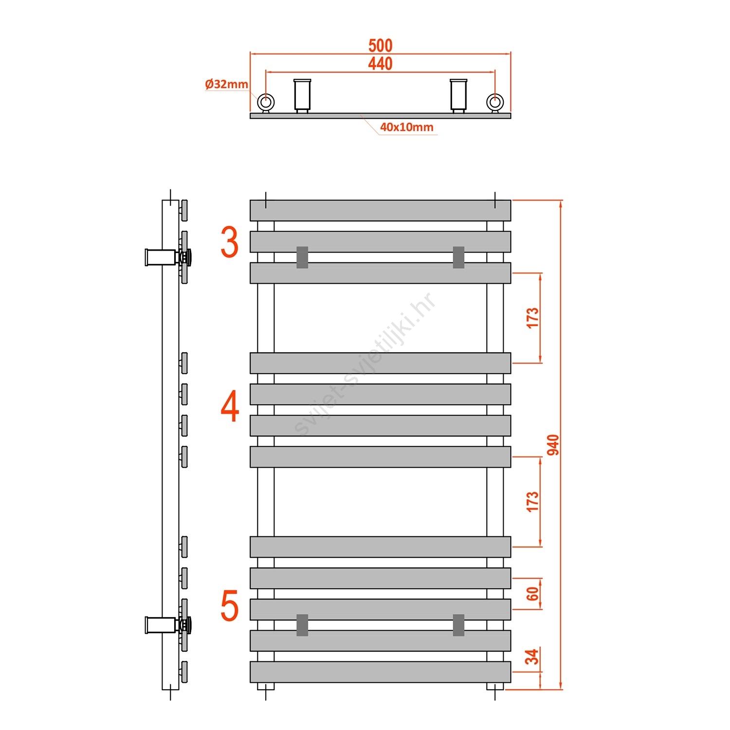 Sapho - Kupaonski radijator JALOUSI 328W/230V 50x94 cm bijela