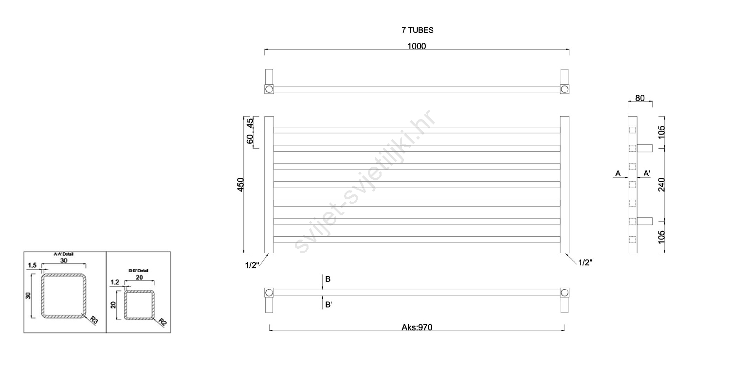 Sapho - Kupaonski radijator METRO 295W/230V 100x45 cm sjajni krom