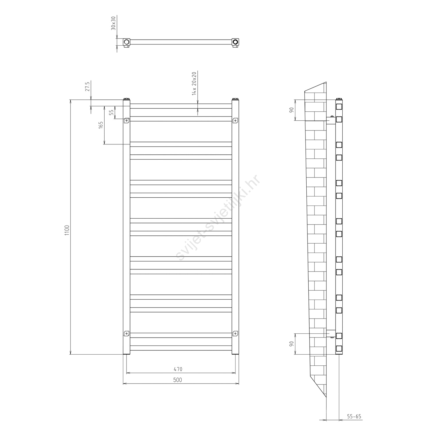 Sapho - Kupaonski radijator METRO DOS 343W 50x110 cm mat crne boje