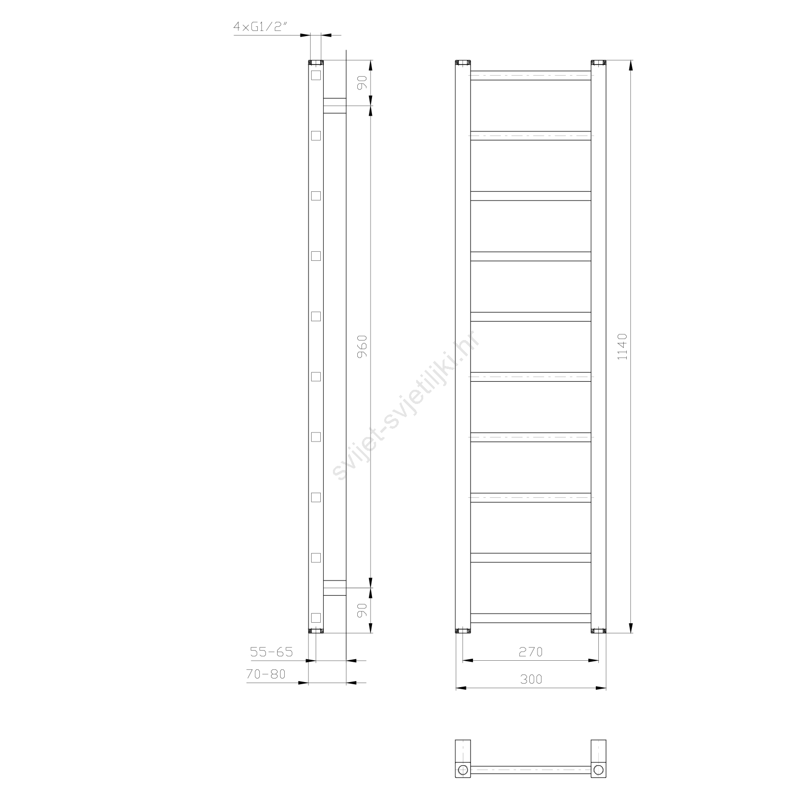 Sapho - Kupaonski radijator METRO LIGHT 211W 30x114 cm bijela