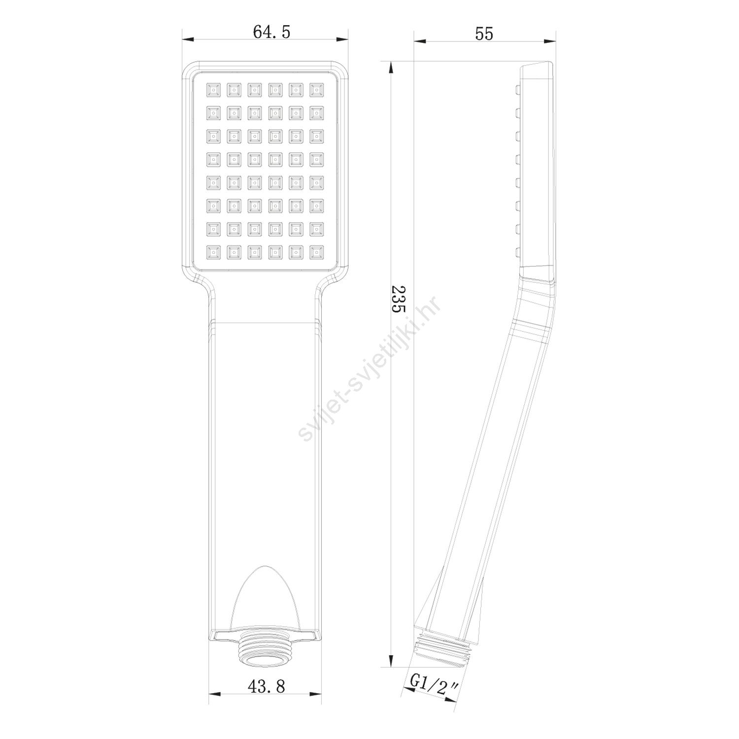 • Ručni tuš visine 235 mm i širine 65 mm.