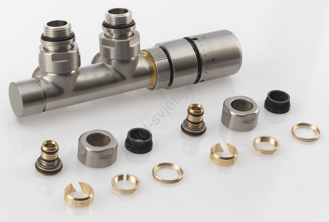 Sapho - Termostatski priključni set za središnje priključivanje TWIN, matirani nehrđajući čelik