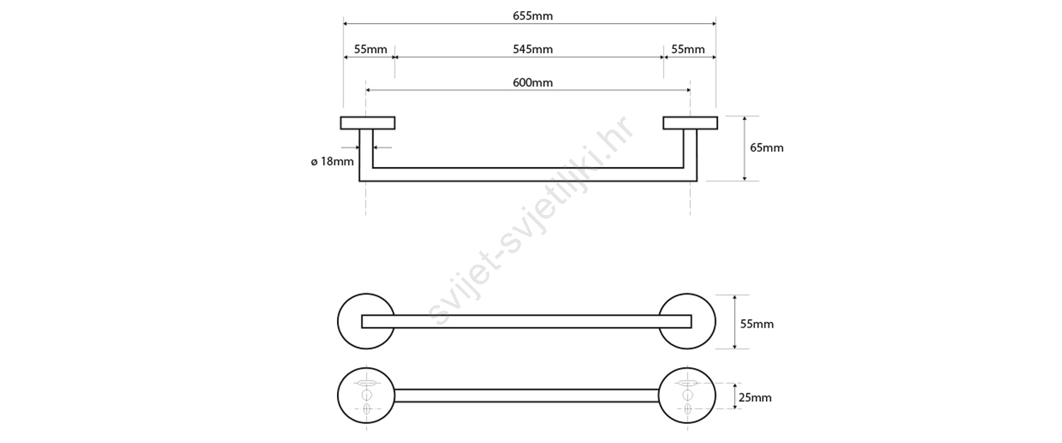 Sapho - Zidni držač za ručnike X-ROUND 6,5x65,5 cm sjajni krom