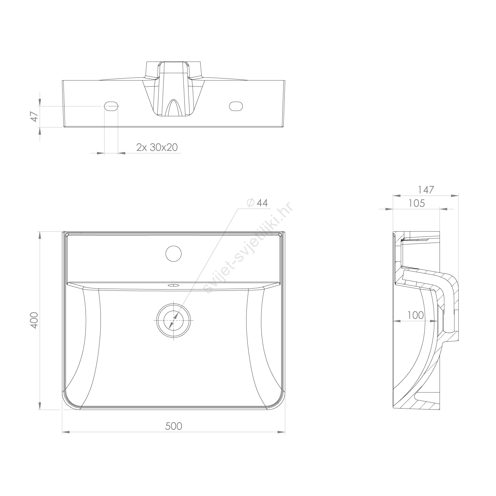 • Ima dimenzije 500x400 mm i bijele je boje.