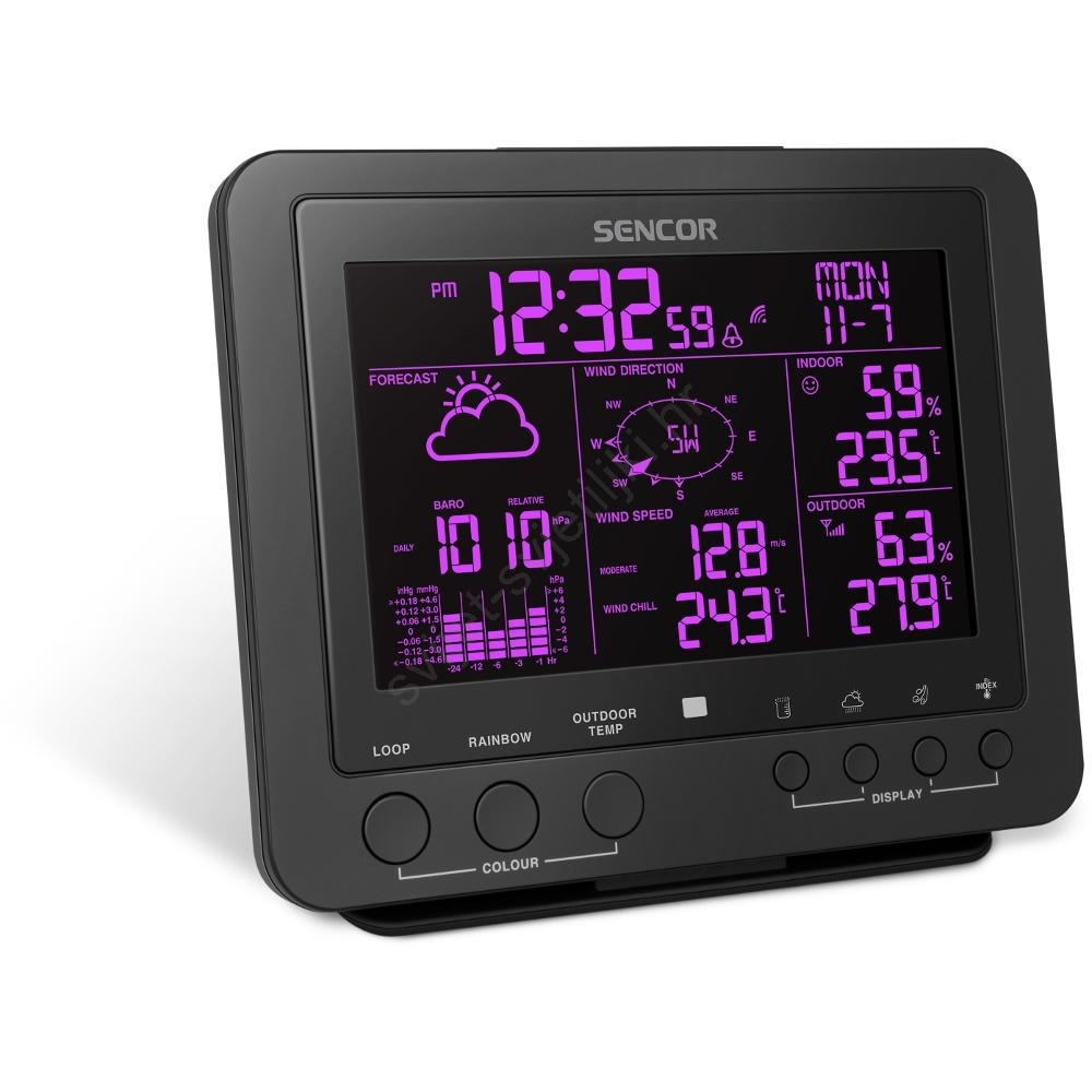 Sencor - Profesionalna meteorološka stanica s kolor LCD zaslonom 5V/1xCR2032 + 3xAA