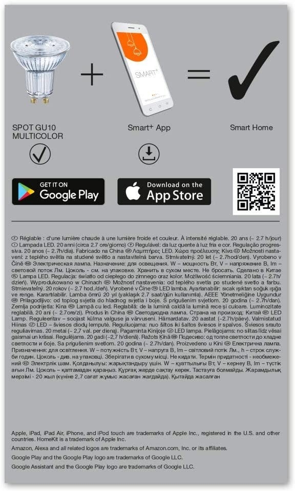 • Upravljanje putem aplikacije LEDVANCE Smart + Wifi app (od Androida 6.0), jednostavno upravljanje putem Google Assistant ili Amazon Alexa glasovnim upravljanjem.