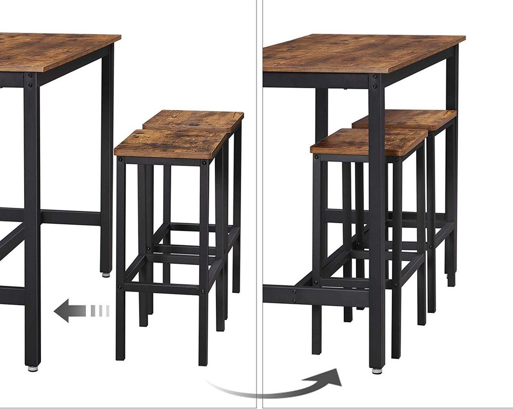 Set barski stol i 2 barske stolice BARTIS, smeđa/crna