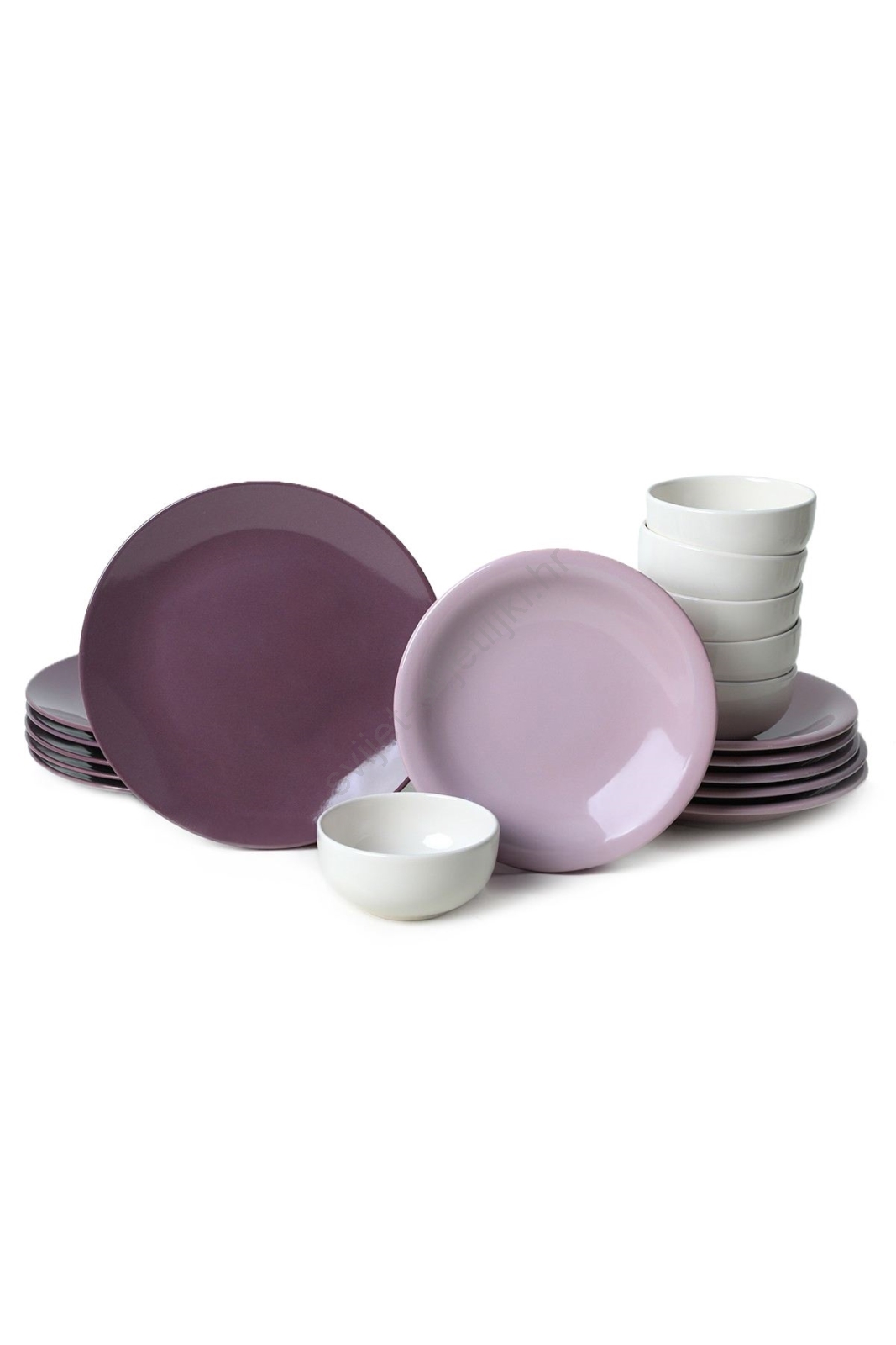 Set posuđa 18 kom ljubičasta/bijela/keramika