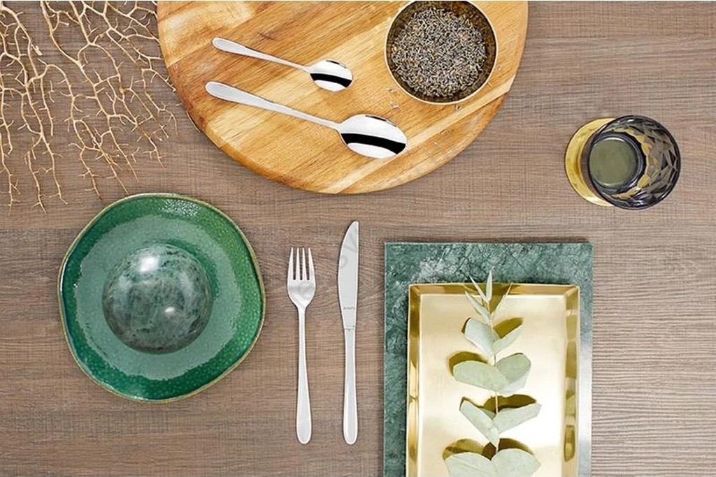 • Set pribora za jelo od nehrđajućeg čelika u sjajnom kromiranom završetku.