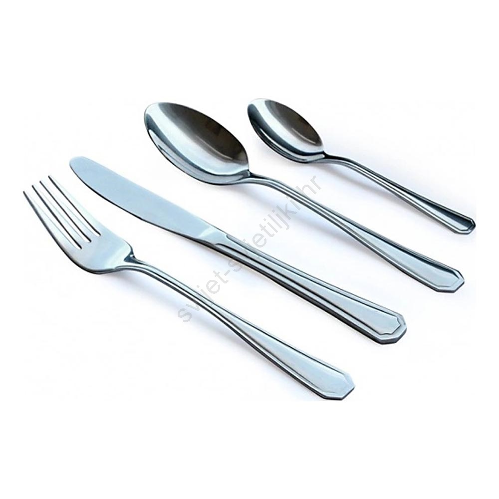 • Set stolnog pribora od nehrđajućeg čelika u sjajnoj krom boji.