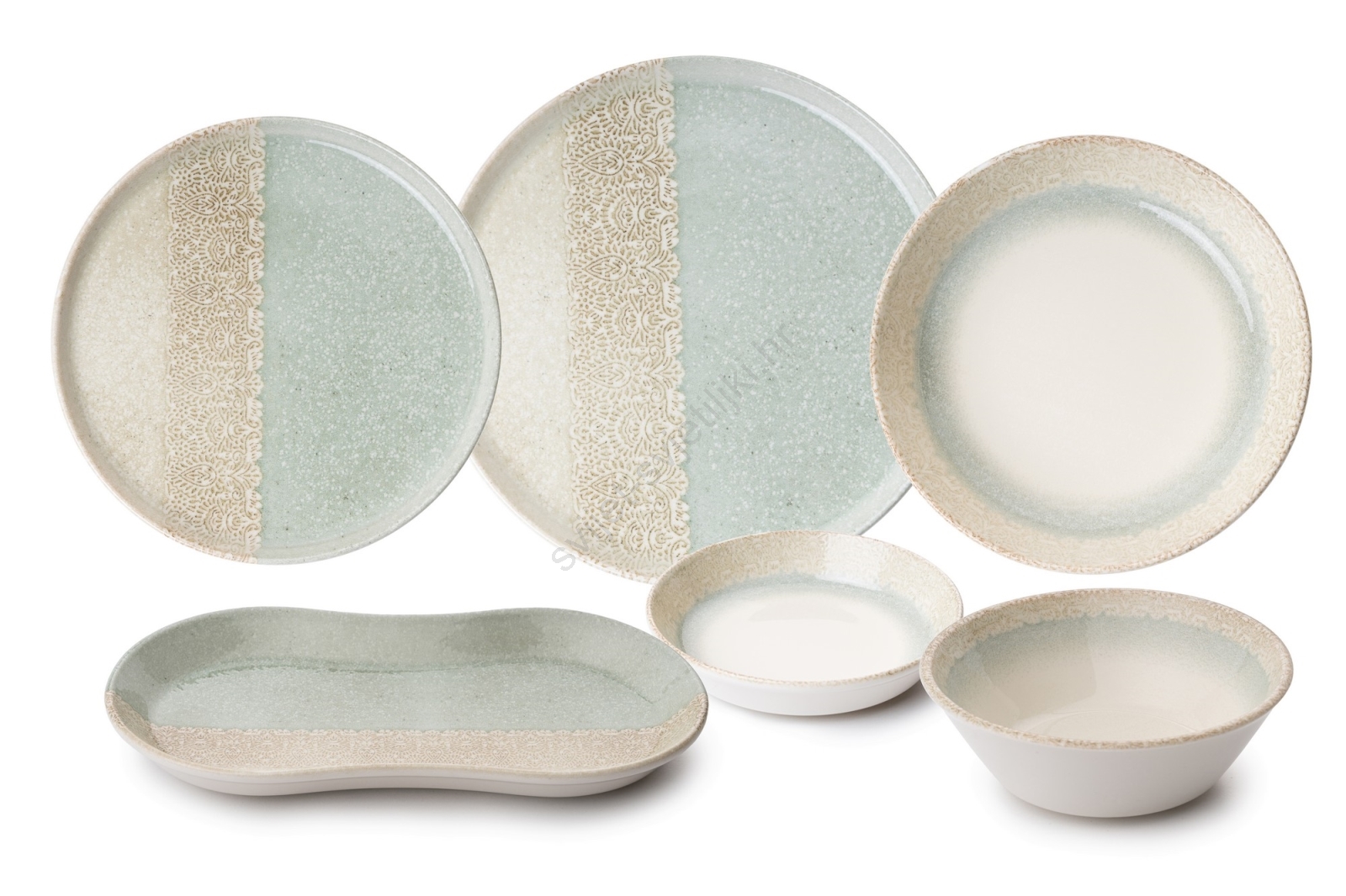 Set za jelo, 27 kom., bež/zeleno, porculan