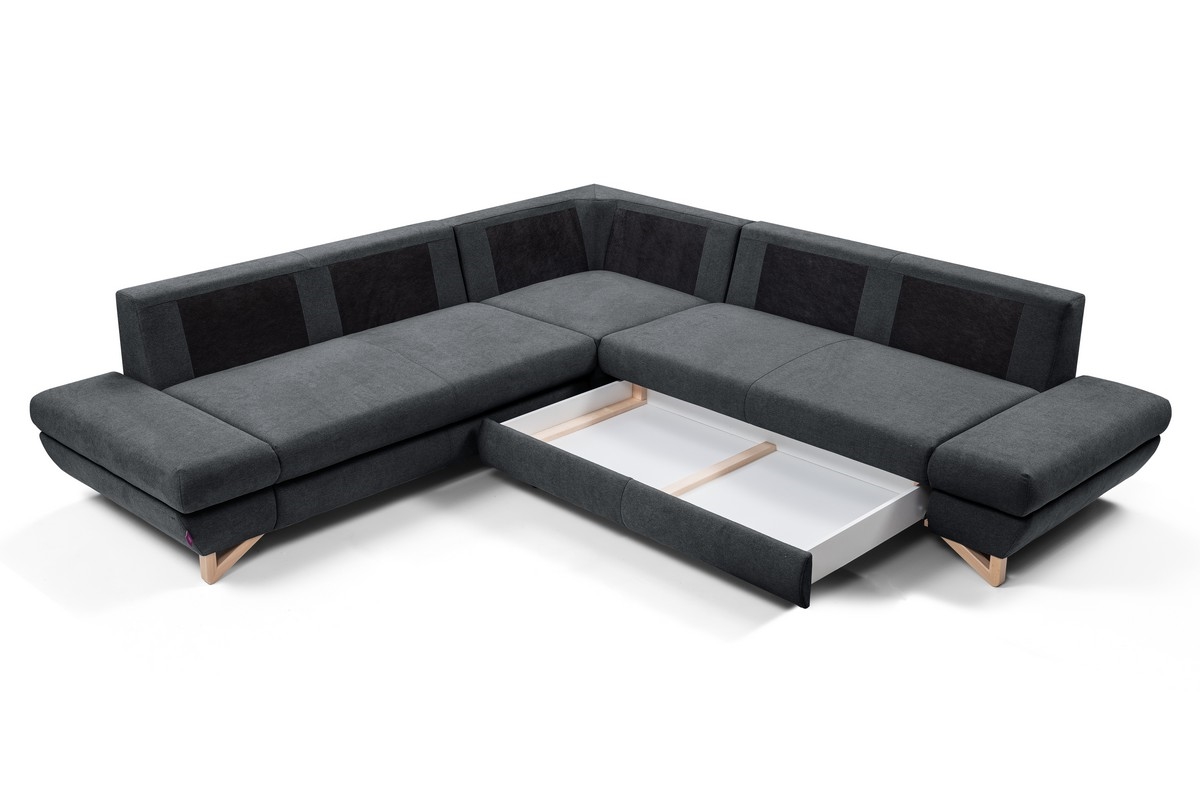 • Razvlačna kutna tapecirana garnitura AVESTA u obliku L sa spremištem, siva