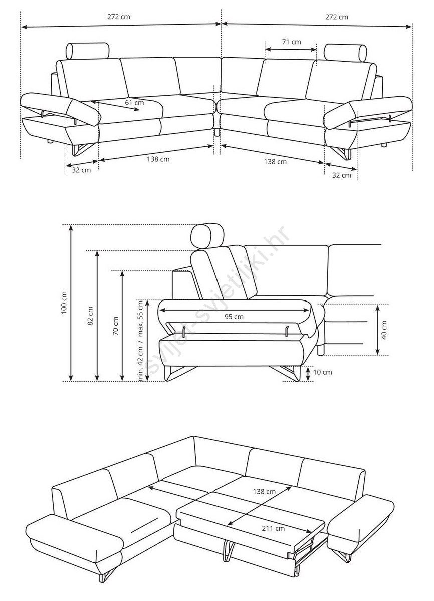 • Garnitura ima prostran spremnik za pohranu za pohranu posteljine i drugih sezonskih stvari.