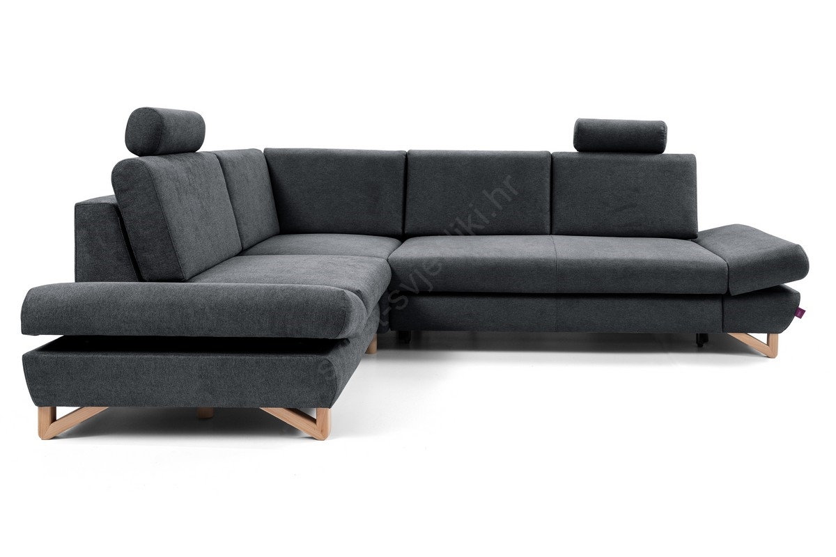 Razvlačna tapecirana kutna sjedeća garnitura s prostorom za pohranu u obliku slova L AVESTA lijeva antracit