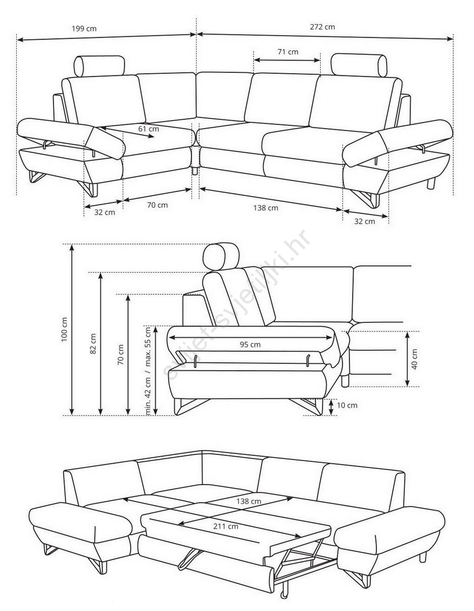 • Sofa ima prostrani spremnik za odlaganje za pohranu posteljine i drugih sezonskih stvari.