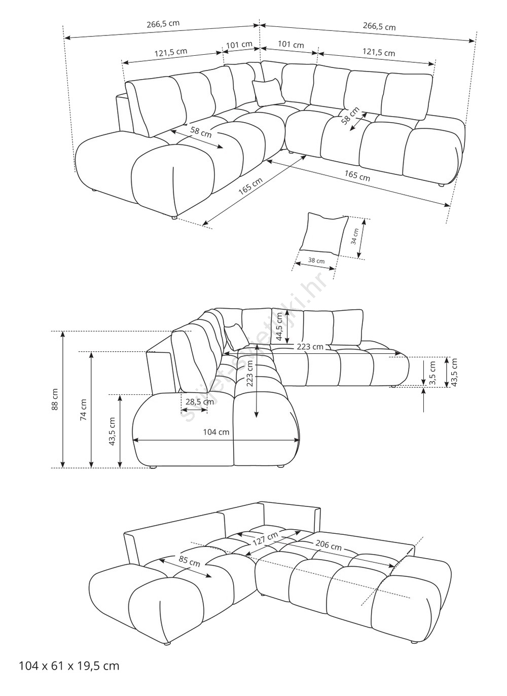 • Moderna kutna garnitura na razvlačenje ALMADA (desni kut) je idealan izbor za svakoga tko traži kombinaciju stila, udobnosti i praktičnosti.