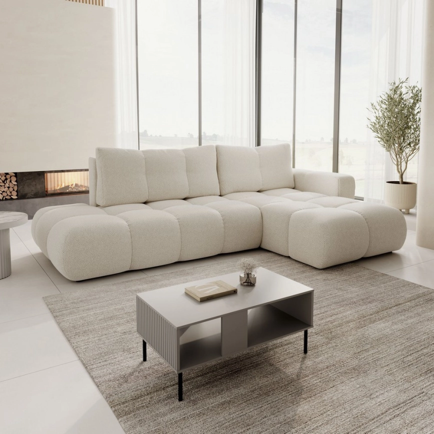 • Razvlačna kutna tapecirana garnitura ALMADA u obliku L, desna, svijetlo bež, s prostorom za odlaganje