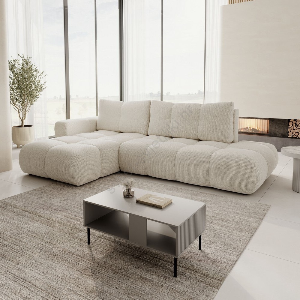 • Moderan razklopni kutni trosjed ALMADA (lijevi kut) je idealan izbor za svakoga tko traži kombinaciju stila, udobnosti i praktičnosti.