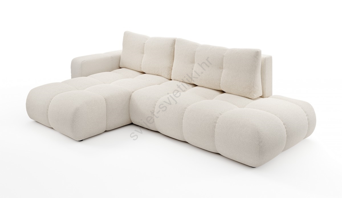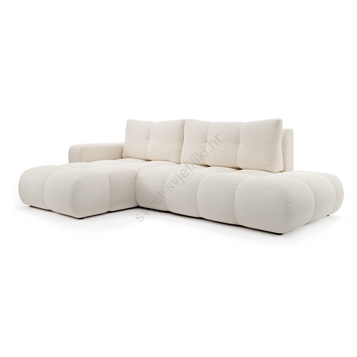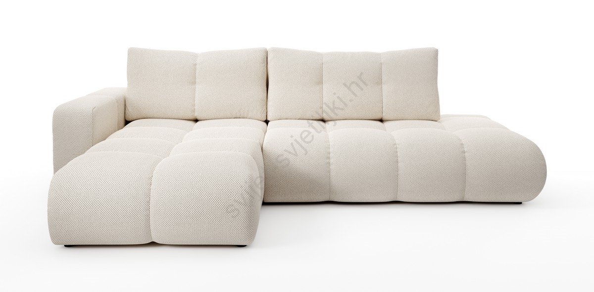 • Razvlačna lijeva kutna tapecirana sjedeća garnitura ALMADA u L-obliku, svijetlo bež, s praktičnim spremištem