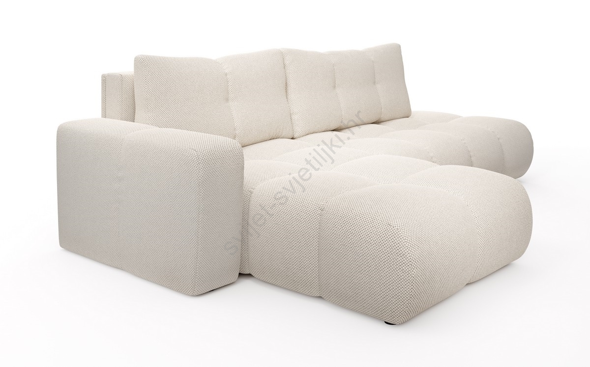 • Razvlačna kutna tapecirana garnitura ALMADA u obliku L, desna, svijetlo bež, s prostorom za odlaganje