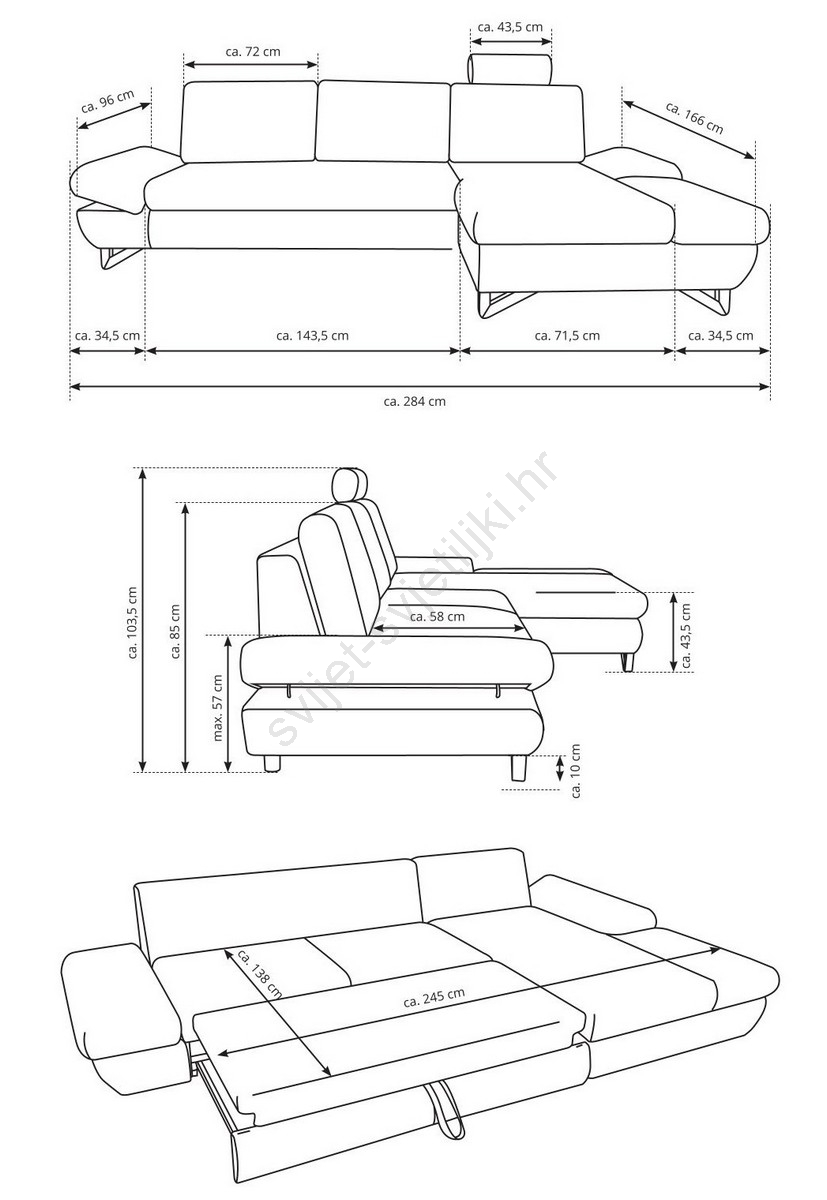 • Moderna rasklopiva kutna garnitura AVESTA (desni kut) je idealan izbor za svakoga tko traži kombinaciju stila, udobnosti i praktičnosti.
